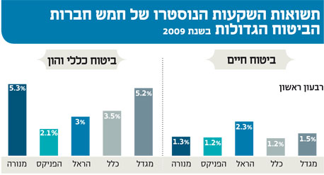 חשיפת תשואות פעילות הנוסטרו של חמש החברות הציבוריות, המוערכת בסכום כולל של 80 מיליארד שקל, מעניקה הזדמנות נדירה להבין כמה כסף בפועל משלשלות חברות הביטוח לכיסן הפרטי. ניתוח התוצאות של שלושת הרבעונים הראשונים של 2009 מעלה נתון מרעיש: חברות הביטוח ייצרו לעצמן בכל אחד מהרבעונים את התשואה שהן מבטיחות לעמיתיהן עבור שנה שלמה, לפחות בכל הנוגע לביטוחי המנהלים שהונפקו לפני 1992 - שבהם מובטחת לכל עמית תשואה שנתית בהיקף ממוצע של 4.8%.