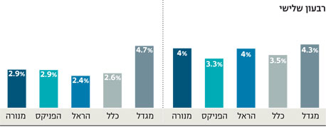 החברות ייצרו בכל אחד משלושת הרבעונים הראשונים ב־2009 את התשואה המובטחת ללקוחות לשנה שלמה. מגדל מובילה בזכות חשיפה גדולה למניות