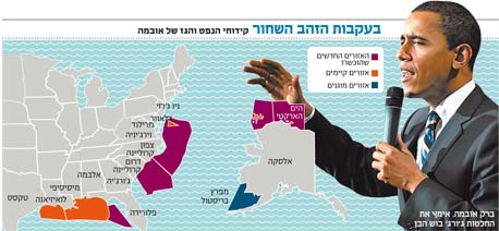 לאחר שהקים עליו את הרפובליקאים עם רפורמת הבריאות, פונה ממשל אובמה לצד השני של המפה הפוליטית ומאמץ יוזמות לחיפושי נפט נרחבים במזרח ארצות הברית. המטרה: צמצום התלות בנפט מיובא והגדלת הכנסות הממשל ממכירת חוזים