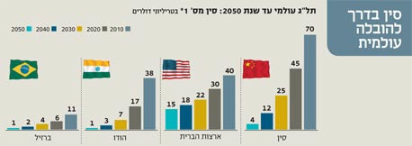 סין, כך נראה, הולכת וקרבה למעמד של הכלכלה הגדולה בעולם. גולדמן זאקס מעריך כי כבר ב־2027 יעלה התל"ג הסיני על התל"ג האמריקאי.