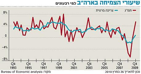 הכלכלה האמריקאית התרחבה ברבעון הראשון של השנה בקצב שנתי של 3.4% אחרי שהתרחבה בקצב שנתי של 5.6% ברבעון הרביעי של 2009. כך עולה מקונסנזוס תחזיות הכלכלנים שערך בלומברג.