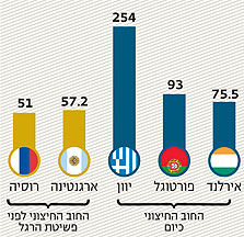 חובה החיצוני של יוון הוא פי חמישה מגודלו של החוב של רוסיה או של ארגנטינה קצת לפני שפשטו רגל. אבל בעוד ששתי המדינות הנ"ל היו מדינות מתפתחות, עם שער חליפין נתמך על ידי בנק מרכזי (רצועת ניוד) וללא גב כלכלי למעט משאבים טבעיים, יוון היא מדינה מפותחת המהווה חלק מגוש היורו, ולכן היא נהנית מיציבות כלכלית גדולה יותר.