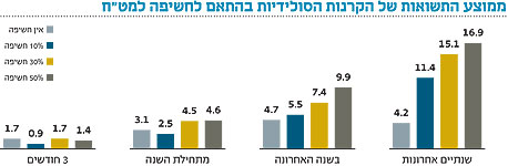 ממוצע התשואות מצביע על יתרון לקרנות בעלות החשיפה למט"ח, כאשר ממוצע התשואה לשנתיים לקרנות עם חשיפה של 30% הוא 15.1% לעומת ממוצע של 11.4% בקרנות עם חשיפה של 10%. יתרון זה בא לידי ביטוי גם בתשואת שלושת החודשים האחרונים: 1.7% בקרנות עם חשיפה של 30% לעומת 0.9% לקרנות עם חשיפה של 10%.