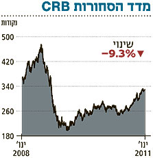 מדד מחירי הסחורות המשוקלל CRB המורכב מחוזים על 19 סחורות עלה מתחילת השבוע ב־2.3%. המדד נמוך כיום ב־30.1% ממחיר השיא שנקבע ביולי 2008, אך גבוה ב־65.6% ממחיר השפל של פברואר 2009.