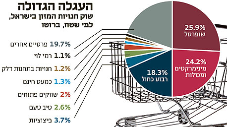 רק שליש ממכירות שוק המזון מצוי במלחמת מחיר, והיתר נגזר בעיקר מהמאבק על מיקומים - כך קובעת סקירה של כלכלני דש ברוקראז'. עוד מסקנות מפתיעות: מניות רשתות השיווק השראליות יקרות מהמקובל בעולם, ופתיחת הרשת החדשה של המשביר תטרוף את הקלפים בענף