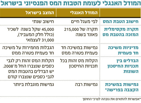 בתחילת החודש הודיע משרד האוצר כי הוא שוקל ליישם את המודל האנגלי בשוק הפנסיוני, ובמקביל לדון במסגרת ועדת שני בהטבות המס שיחולו על החוסכים. אם אכן ייושם המודל האנגלי (וההערכות מדברות היום על יישום כבר בעוד שנה־שנתיים), הוא צפוי להשפיע דרמטית על שוק החיסכון הפנסיוני בישראל, ולאפשר צבירה גבוהה יותר של כספי חיסכון לאורך השנים.