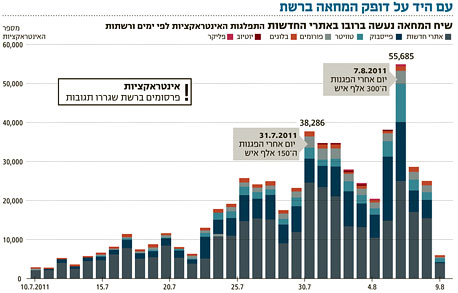 החברות שעוקבות אחר התנהגות ההמונים ברשת מציגות בפני "כלכליסט" את הדרך שבה האתרים החברתיים מקדמים תנועות מחאה. איך רבע מיליון גולשים הפכו את טוויטר מאתר ציוצים לאתר דיונים, למה נפח השיחות עלה ב-18% ומדוע השיא אולי עוד לפנינו?