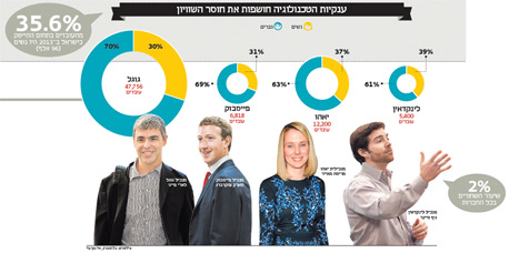 בקרב כל הדו"חות שפרסמו החברות, נשים מהוות מיעוט מובהק לעומת גברים. בגוגל הנשים מהוות 30% בלבד מכוח העבודה, בלינקדאין הן רק 39% מכלל העובדים, ביאהו 37% ובפייסבוק המצב עלוב במיוחד: למרות העובדה שהגורם החזק ביותר בחברה אחרי המייסד מארק צוקרברג היא סמנכ"לית התפעול סנדברג, רק 31% מהעובדים ברשת החברתית הם נשים. בהייטק הישראלי התמונה דומה: לפי נתוני הלשכה המרכזית לסטטיסטיקה ל־2013, נשים מהוות 35.6% מהעובדים.