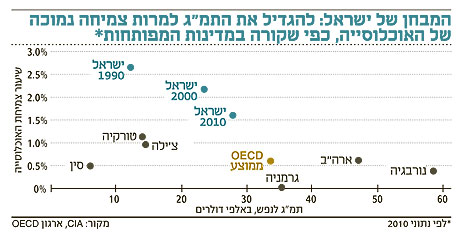 שיעור צמיחת האוכלוסייה בישראל עדיין גבוה מממוצע מדינות ה־OECD, אבל המדינה אינה מנצלת באופן מיטבי את היתרון הגלום בכך בגלל שיעור ההשתתפות הנמוך בשוק העבודה. לפי נתוני סוף 2010 עמד שיעור ההשתתפות בשוק העבודה בישראל על 57%, נמוך משמעותית משיעור ההשתתפות הממוצע במדינות ה־OECD.