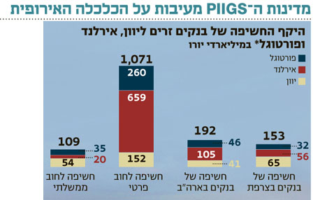 החשיפה של הבנקים הזרים למדינות הפריפריה (יוון, פורטוגל ואירלנד) מסתכמת ב־1.2 טריליון יורו הכוללים את הסקטור הציבורי והפרטי. 91% מהחשיפה הם לסקטור הפרטי. זה נכון שמצבן של החברות במערב כנראה טוב יותר ממצבן של המדינות, אבל ההנחה שהסקטור הפרטי יוכל לחמוק מהשפעותיה של קריסה ציבורית תהיה ולא אחראית.