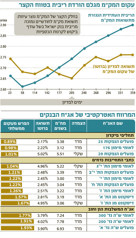הציבור מתבצר בבונקר של המק"מים והקרנות הכספיות, אך בחינת האלטרנטיבות מעלה שאג"ח ממשלתיות לשנתיים־שלוש מגלמות סיכוי גבוה לתשואה עודפת בסיכון נמוך. וגם: העלאת דרישות ההון פוגעת במניות הבנקים - אך מיטיבה עם משקיעי האג"ח שלהן