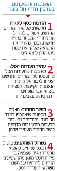 ב־1 במאי תעדכן הבורסה שוב את מדדי התל בונד, כאשר השינוי הפעם יהיה דרמטי מהרגיל, ויכלול הוספת מדדים חדשים ומעניינים ושינוי במתודולוגיית המדדים. הבורסה מתכוונת להשיק שלושה מדדים: מדד תל בונד צמוד - שיכלול את כל איגרות החוב הקונצרניות הצמודות למדד במאגר האג"ח שיוקם; מדד תל בונד צמודות־יתר - שבדומה למדד היתר במניות, יכלול את האג"ח הצמודות שאינן מהוות חלק מתל בונד־60. הבורסה משיקה כאן בעצם מדד אקס תל בונד, אולי בהשראת המדד המשותף של "כלכליסט" ומנורה מבטחים, שחדר ללב הקונצנזוס של המשקיעים.