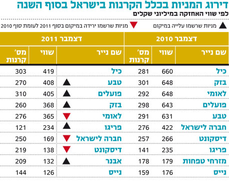 שווי האחזקה הכולל של מניות ישראליות בכלל קרנות הנאמנות בישראל - קרנות מנייתיות, קרנות אג"ח משולבות עם מניות ואחרות - הוא 8.1 מיליארד שקל, והוא מהווה כיום כ־5.7% בלבד מנכסי תעשיית הקרנות. נתוני האחזקות של קרנות הנאמנות מתפרסמים מדי חודש באתר הבורסה לניירות ערך, כאשר הנתונים נכונים לחודשיים קודם לכן, כך שניתן לסכם, אפוא, את שנת 2011 בתעשיית הקרנות מבחינת ההעדפות של מנהלי הקרנות. בטור זה נסקור ונתמקד במניות המקומיות הפופולריות ביותר בתעשייה.
