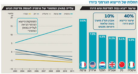 בנוסף, אם יש מדינה באירופה שמצוידת היטב כדי להחזיק מעמד לבדה, הלא היא גרמניה. הכלכלה הגרמנית מפוזרת וגמישה ויש ביכולתה לגייס הון במחירי רצפה. עם זאת, בשבועות האחרונים מתרבים הסדקים בכלכלה הגרמנית. גרמניה אמנם הסיטה חלק גדול מהיצוא שלה אל מחוץ ליבשת, ובכל זאת החשיפה שלה לאירופה עדיין גבוהה.
