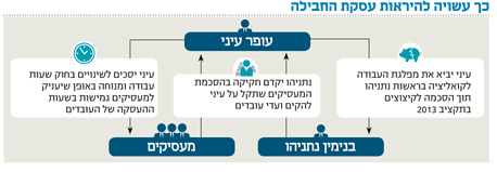 חוק שעות עבודה ומנוחה, שקובע את חישוב השעות הנוספות, הוא מטרה נוחה לתקיפה מצד המעסיקים. מדובר בחוק משנת 1951, וספק אם מתאים לצרכי המעסיקים בשוק העבודה במאה ה־21. המעסיקים מאוד רוצים לשנותו, ולא מסתירים זאת. כפי שפורסם לראשונה ב"כלכליסט", לאחרונה אף הוקמה בתמ"ת ועדה מיוחדת שאמורה להמליץ על שינויים בחוק בכיוון שאליו המעסיקים מעוניינים ללכת, אך התמ"ת התחייב לקבל את הסכמתו של עיני לכל שינוי שכזה. כך יוצא שבמסגרת עסקת חבילה אפשרית עיני יסכים לשדך את העבודה לקואליציה, שתסכים לקיצוץ תקציבי בתמורה לתיקים כלכליים־חברתיים ולהגדלת הגירעון. בתמורה אולי יקבל עיני עוד כמה חוקים, כגון חוק שיקל על הקמת ועדי עובדים במקומות עבודה גדולים, כמו כלל ביטוח ופלאפון, שבהם נתקלת ההסתדרות בקשיים בהקמת ועד עובדים יציג. ומה המעסיקים יקבלו בתמורה לכך שיסכימו לחוקים שכאלו? את בבת עינם: חוק שעות עבודה ומנוחה החדש, התשע"ג - 2013.