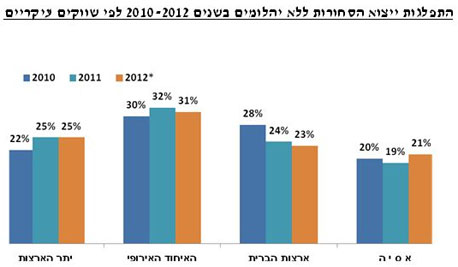 מכון היצוא: ב-2012 חל קיפאון ביצוא הישראלי