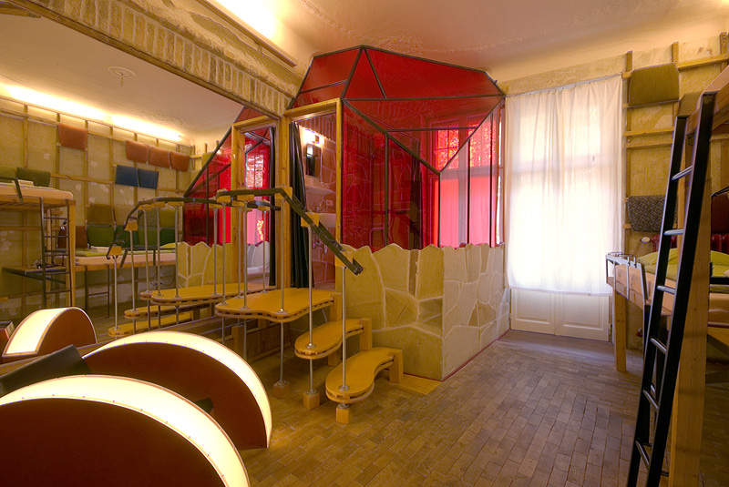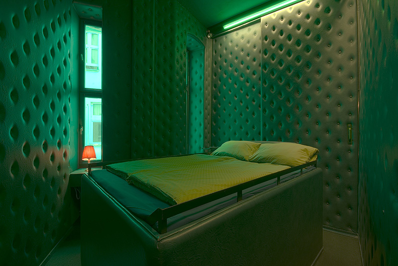 ניתן למשל לשהות לילה בחדר הנראה כתא בבית סוהר, או לישון בארונות קבורה מתחת למכסה סגור. במלון יש גם חדר הפוך שבו תלויים הרהיטים מהתקרה והאורחים ישנים בקופסאות מתחת לרצפה וחדר עם רצפה שגורמת למיטה "לעוף". כל הרהיטים והחפצים יוצרו במיוחד עבור המלון. העיצוב הופקד בידי האמן הגרמני לארס סטורצ'ן.