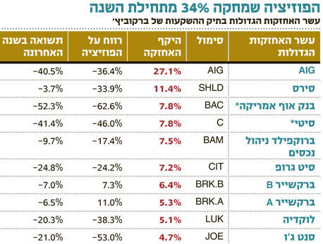 ברקוביץ' החל להגדיל את אחזקותיו הפיננסיות ברבעון הראשון של 2010, ומאז הוא לא הפסיק למרות ההפסדים. את מניות חברת הביטוח AIG, אחזקתו הגדולה ביותר, הוא קנה במחיר ממוצע כ־33 דולר למניה, כאשר נכון להיום, הוא מופסד ב־36% על האחזקה. תמונה עגומה יותר עולה מהשקעותיו בבנק אוף אמריקה, שם הפסדיו עולים על 63%.