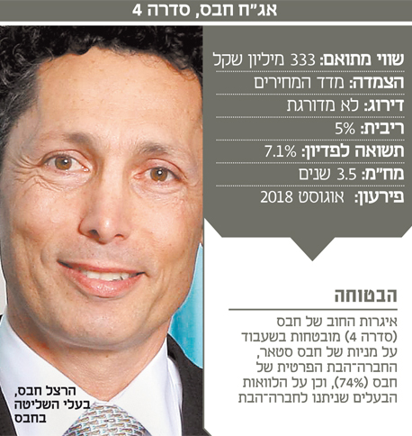 בשבוע שעבר השלימה חבס הנפקה של אג"ח 4 באמצעות הרחבת סדרה. חרף העובדה שהאג"ח אינה מדורגת, הצליחה חבס לגייס כ־56.7 מיליון שקל ע"נ הודות לכך שהסדרה שבחרה להרחיב נהנית מביטחונות.