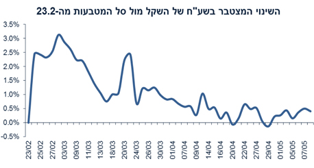 יונתן כץ מלידר שוקי הון כותב בסקירתו השבועית כי בנק ישראל מצליח בשלב זה לשמור על יציבותו של המטבע המקומי: "הרבה טלטלות עברו על שוק המט"ח בשבועות האחרונים כאשר שער החליפין של היורו דולר התחזק צ-1.06 דולר ליורו ב-15 באפריל ל-1.12 דולר ליורו בתחילת השבוע. יחד עם זאת, בנק ישראל הצליח בינתיים לייצב את השקל מול סל המטבעות אשר נמצא רחוק מרמת השפל של ה-23 בפברואר".