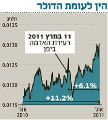 שר האוצר היפני נערך להתערב בשוק המט"ח, זאת במטרה לבלום את ההתחזקות הבלתי מרוסנת של הין - כך מדווחת סוכנות הידיעות בלומברג. לדברי השר יושיהיקו נודה, הוא מוכן להתערבות בכל עת, שכן התחזקות המטבע מאיימת על צמיחת הכלכלה המקומית. "אי-היציבות נמשכת ואני אמשיך לעקוב מקרוב אחר השווקים כדי לנקוט צעדים אמיצים אם אצטרך", אמר השר בראיון לרשת הטלוויזיה המקומית NHK.