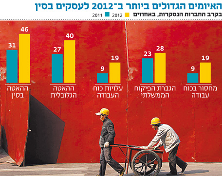 הסקר מגלה כי 46% מהחברות האמריקאיות שפועלות בסין רואות בהאטה הכלכלית שלה את האיום החריף ביותר ב־2012, לעומת 31% ב־2011