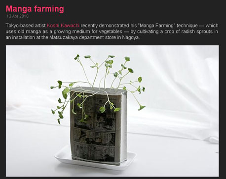 אם יש לכם צורך בלתי נשלט לגדל צנונית, עדיף לעשות את זה בדרך מגניבה באמת, שאפילו אפשר להשתמש בה בסלט. עציצי המאנגה של האמן היפני קושי קוואצ'י הם בדיוק המתנה שתוכלו לתת לעצמכם או לחבריכם המכורים לפארמוויל כאות ורמז לדברים החשובים באמת בחיים. כן, באמת אפשר לקנות את הדברים האלו, רק חבל שלא בארץ.