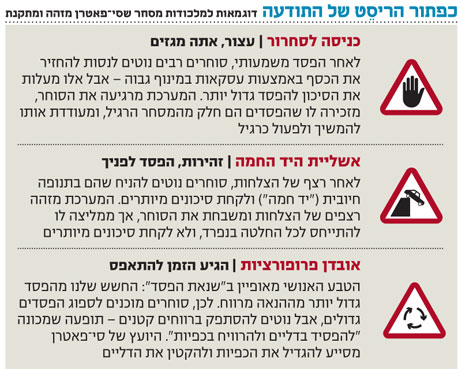 "זו לא מערכת שיפוטית", מסביר המנכ"ל עודד שפר. "היא לא תאמר לך שהמינוף שלקחת אינו טוב, אבל היא יכולה לרמוז לך שהעלאת מינוף ברגע ספציפי היא התנהגות מסוכנת. היא מצביעה לסוחר על גבולות גזרה הגיוניים, ושומרת שלא יהיה הרפתקן מדי, אבל גם לא שמרן מדי". כך, למשל, משקיע שמפסיד כסף בפתאומיות יקבל מסר הרגעה שמסביר לו שמה שקרה אינו כה נורא, ומזהיר מפני פיצוי באמצעות נטילת מינופים מוגזמים שעלולים להוביל לסחרור.