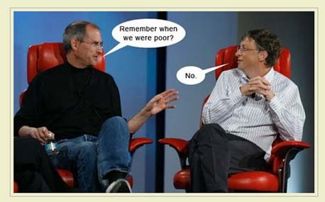 ביל גייטס וסטיב ג'ובס עשירים, מאושרים, יכולים לבצע את המהלך הסופי של השתלטות על העולם בכל רגע נתון - ועל כך אנחנו שונאים אותם עד מאוד. אין לנו הרבה מה לעשות בנדון, היות והחיים שלנו כבר די מסובכים בכל מה שיש להם להציע. לכן נשאר רק לקחת את העניין בהומור ולצחוק עליהם קצת. או יותר נכון לתת להם לצחוק על עצמם, תוך שימוש בשלושה פאנלים בעלי פוטנציאל קומי אינסופי. המקור, אם תהיתם, הוא ראיון משותף ואגדי עבור All Things Digital שנעשה ב-2007.