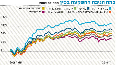 מעניין לראות כי קרן ישראלית נוספת, מגדל דיקלה סין, המנהלת 114 מיליון שקל, השיגה תשואות טובות יותר בטווחים הקצרים, והיא אפילו ממוקמת כמובילה העולמית בתשואה מתחילת 2009, עם 112%.