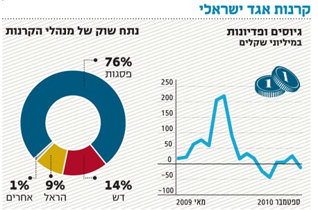 במהלך החודשים מאי־דצמבר 2009 גייסו קרנות אגד ישראלי כ־0.8 מיליארד שקל. אבל שנת 2010 אינה השנה של קרנות האגד הישראלי, והן לא הצליחו להמשיך את המומנטום שלהן ולרשום גיוסים. מנגד, קרנות אגד חוץ רשמו גיוסים מרשימים של כ־1.5 מיליארד שקל מתחילת השנה ועד סוף ספטמבר.