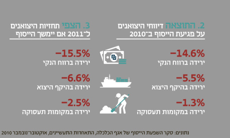 הסקר שערכה התאחדות התעשיינים ניסה גם לחזות את מצבם בסיטואציה של המשך היחלשות הדולר גם לתוך שנת 2011. עשרות החברות שהשתתפו בסקר התבקשו להעריך מה צפוי להיות מצבן בהנחה של שער חליפין ממוצע ברמה של 3.5 שקל לדולר במהלך השנה הבאה. 53% מהחברות הנסקרות דיווחו כי בתרחיש זה הן צופות ירידה במחזור המכירות שלהן - מה שעל פי חישובי התעשיינים צפוי להביא לאובדן עסקאות של 6.6% בייצוא התעשייתי לעומת השנה הקודמת. 38% מהחברות העריכו שבסביבה דולרית כזו הן גם ייאלצו לפטר עובדים.