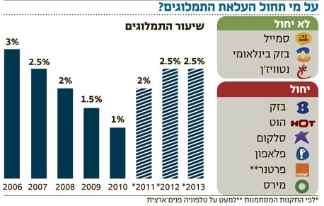 בשנת 2009 שילמו חברות התקשורת למדינה תמלוגים בהיקף של כ־243 מיליון שקל, זאת בנוסף לכ־82 מיליון שקל ששילמו זכייניות הטלוויזיה המסחרית (ערוץ 2 ו־10) וחברות הטלוויזיה הרב־ערוצית (yes ו־HOT). על פי הערכת האוצר, תגדיל ההעלאה את ההכנסות מתמלוגים של חברות התקשורת לכ־500 מיליון שקל ב־2011, ולכ־625 מיליון שקל ב־2012 וב־2013.