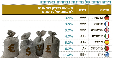 בתוך כך, בקצה השני של הסקאלה, הודיעה השבוע גרמניה לנציבות האיחוד האירופי כי אין בכוונתה לעשות שימוש ב"מכשירים נוספים" מתוך הארסנל שעומד לרשותה. שר האוצר הגרמני גווידו ווסטרוול הקשיח את עמדותיו והציב מועד יעד - חודש מרץ - למציאת פתרון כולל למשבר החובות הריבוניים.
