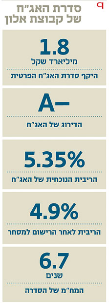 סדרת האג"ח האמורה היא בהיקף של 1.8 מיליארד שקל ע"נ, היא נושאת מח"מ של 6.7 שנים ואמורה להיפרע בשמונה תשלומים שנתיים שווים בין השנים 2016 ו־2023. נכון לאתמול, הסדרה נסחרת בין המוסדיים בתשואה לפדיון של 7%. מאז הנפקת האג"ח לפני כארבע שנים, הורידה S&P מעלות את דירוג החוב של אלון בשלוש דרגות ל־-A עם אופק יציב. הדירוג האחרון נקבע בספטמבר 2010 על בסיס דו"חותיה של אלון למחצית הראשונה של 2010.