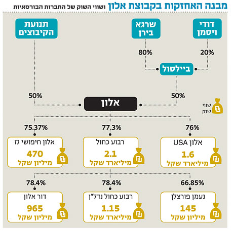 אלון היא חברת אחזקות פרטית המוחזקת בחלקים שווים על ידי ביילסול וארגוני הקניות של הקיבוצים, כאשר האחזקות בביילסול נחלקות בין שרגא בירן (80%) ודודי ויסמן (20%). מעצם היותה חברה פרטית, אלון אינה מחויבת להציג את דו"חותיה הכספיים, וקשה להתחקות במדויק אחר מצבה הפיננסי או הסיבות שבגללן היא מתכוונת לרשום את האג"ח למסחר.