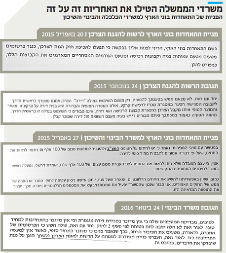 חודש לפני שהתחיל מגדל הקלפים של ענבל אור להתפרק, משרד הבינוי והשיכון ומשרד הכלכלה עוד גלגלו זה לפתחו של זה את האחריות על תלונות שהגיעו לגבי הבעיות בחוזים שלה. אז למה אף אחד לא התייחס לאזהרות שהתקבלו מהתאחדות בוני הארץ