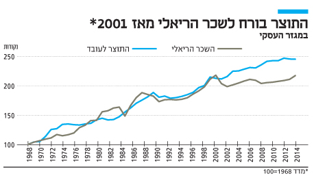 במרכז המחקר, שערך הכלכלן גלעד ברנד, עמדה השאלה איך זה שאף על פי שהעובד הישראלי הממוצע מפיק תוצר הגבוה ב־15% מזה שנרשם ב־2001, השכר הריאלי שלו (הגידול בשכר שמופיע בתלוש פחות האינפלציה) קפוא מאז. התשובה הרווחת בקרב חלק גדול מהכלכלנים בישראל היא שכוח המיקוח של העובדים קטן עם השנים והם אינם דורשים העלאות שכר כבעבר, אם בשל תהליכים של גלובליזציה ואם בשל השיעור הנמוך של העובדים המאוגדים בוועדים. סיבה אחרת היא שהממשלות בעשור האחרון הפחיתו את מס ההכנסה שמשלמים השכירים, ומכיוון שהעובד רואה מולו שכר נטו שגדל, הוא לא לוחץ על מעסיקו להעלות אותו, והמעסיק יכול להרשות לעצמו לא להגדיל את שכר הברוטו וכך חוסך כסף.