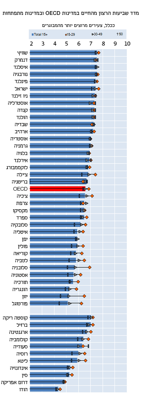 ישראל מדורגת במקום השישי במדד שביעות הרצון מהחיים במדינות ה-OECD ובמדינות מתפתחות. בשוויץ האזרחים הם המרוצים ביותר