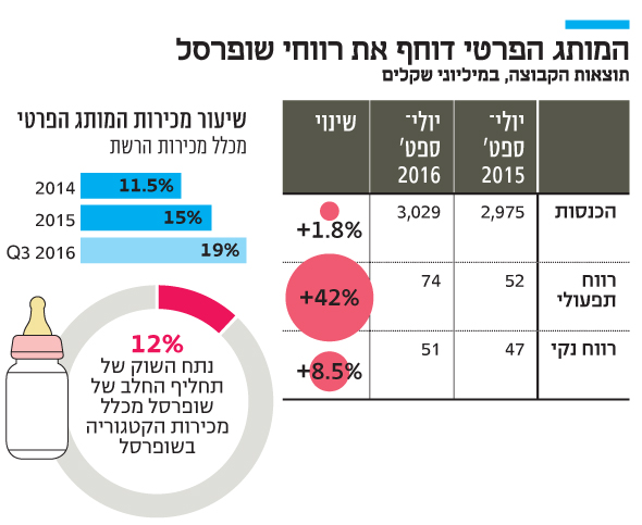 המותג הפרטי של שופרסל ממשיך לנגוס בנתח הספקים והוביל לעליות בהכנסות וברווחי הרשת מקבוצת אי.די.בי. ההישג נרשם בתקופה בה חלק ניכר מספקיה הגדולים של הרשת מתמודדים עם ירידה במכירות, בין היתר על רקע היחסים המסחריים עם הרשת שמרחיבה את המותג שלה בקטגוריות נוספות.