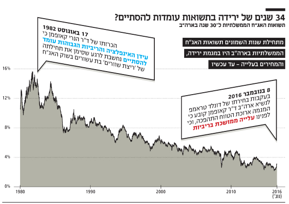 קאופמן אינו היחיד שמדבר על סופו של עידן. גם מנהל ההשקעות הידוע ביל מילר הצטרף לתחזית הזאת אחרי הבחירות בארה"ב, כשהצהיר ש"השוק השורי בן 35 השנים נגמר, ואנשים הולכים להתחיל להפסיד כסף באג"ח". דברים דומים נשמעו מכיוונו של ריי דליו, מייסד ברידג'ווטר, קרן הגידור הגדולה בעולם, שעשה את הונו בשוק האג"ח הדוהר של העשורים האחרונים. "יש סבירות גבוהה שעברנו את השיא בן 30 השנים במחירי האג"ח", כתב בשבוע שעבר. אם אחרי המשבר הפיננסי שררה הסכמה שאנחנו נמצאים בעידן "הנורמלי החדש" של ריביות נמוכות ואינפלציה מדשדשת, הרי שעכשיו נראה שגם העידן הזה הסתיים.