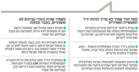 יאיר שמיר הוא אולי טייס ואיש עסקים, קורות החיים שלו אולי מרשימים, אבל אין שום סיבה לעקם בשבילו את הכללים. הוא לא היה יו"ר מוצלח לחברה בקדנציות הקודמות; הוא היה שותף מלא של יו"ר ועד העובדים הקודם חיים כץ, היום שר שגם תומך במינוי, לפוליטיזציה של החברה; הוא לא מתכוון לוותר על עסקיו הפרטיים; והוא גם לא יכול ולא צריך להחזיק במקביל בשני תפקידים ממשלתיים בכירים.