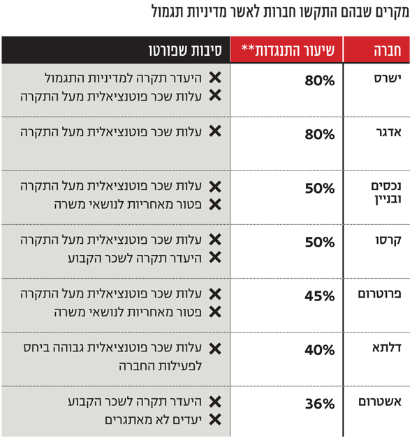 באדגר עלות השכר הפוטנציאלית היתה יותר גבוהה מהתקרה, בקרסו לא נקבעה כלל תקרה לשכר הקבוע ובאשטרום הציבו יעדים לא מאתגרים. כלכליסט ממפה את הסיבות שגרמו למוסדיים להתנגד למדיניות השכר שהציעו חברות ואת הרגישויות של כל גוף מוסדי בבואו להכריע