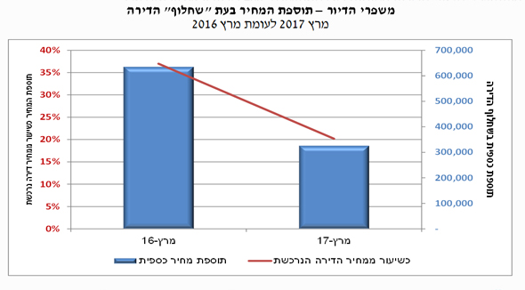 כמו כן, הצטמצם הפער שבין מחיר הדירה שמוכרים משפרי הדירה לזו שהם קונים, דהיינו, תוספת המחיר הנדרשת מהם בעת הרכישה של דירתם החדשה. כך, ברמה הארצית הצטמצם פער זה משיעור ממוצע של 59% במרץ אשתקד, לפער ממוצע של 25% בלבד במרץ השנה.