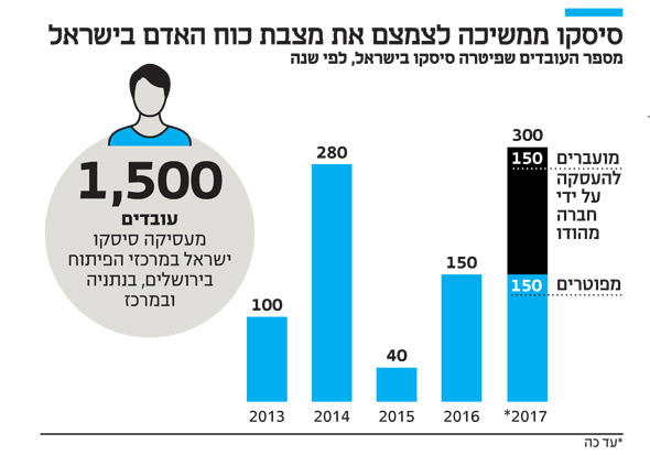 העובדים יפוטרו ממרכז החברה בירושלים. בנוסף, יועברו כ-150 עובדים נוספים ממנו למיקור חוץ בחברת LNT ההודית. המרכז הוקם על בסיס פעילות חברת NDS, אותה קנתה סיסקו ב-2012 בחמישה מיליארד דולר