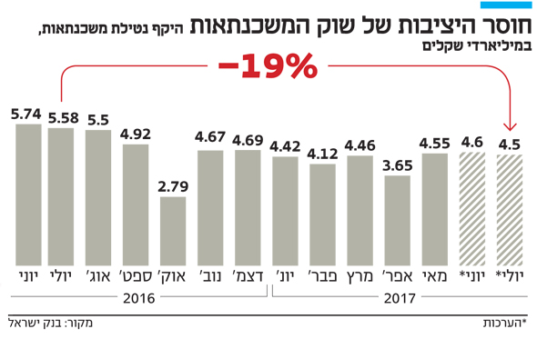 היקף המשכנתאות ביולי צפוי לעמוד על 4.5 מיליארד שקל, ירידה של 19%
