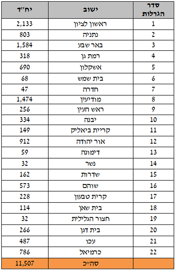 היישובים שנכללים בהגרלה הם: ראשון לציון, נתניה, באר שבע, רמת גן, אשקלון, בית שמש, חדרה, מודיעין, ראש העין, יבנה, קריית ביאליק, אור יהודה, דימונה, נשר, שדרות, שוהם, קריית טבעון, בית שאן, חצור הגלילית, בית דגן, עכו וכרמיאל. עוד נמסר ממשרד האוצר כי ההגרלה ליישובי המגזר הערבי תידחה בכדי לאפשר למשתתפים נוספים להירשם לתוכנית.