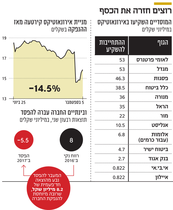 המוסדיים שהשתתפו בהנפקת המניות של חברת המל"טים ומערכות המודיעין אירונאוטיקס לא רק הפסידו 15% מאז יוני – אלא מתברר שהם גם מימנו את ההנפקה עצמה. כעת הם דורשים מקרנות ההשקעה שמכרו את מניותיהן בהנפקה להחזיר לחברה את הוצאות ההנפקה, המסתכמות בכ־30 מיליון שקל.