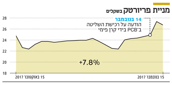 אך בתחילת השבוע נרשמה תפנית מפתיעה שגרמה לבעלי מניות המיעוט להנמיך מעט את הלהבות מול החברה. התברר שקרן ההשקעות פימי תרכוש 51% מהחברה־הבת של פריורטק (70%) PCB תמורת 125 מיליון שקל - גבוה ב־8% ממחיר המניה ערב הדיווח. מניית PCB הגיבה שלשום בזינוק של 50% ופריורטק זינקה ב־10%.