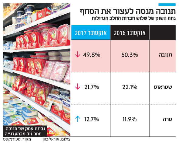 בשנים האחרונות נחלש כוחה של תנובה בשוק החלב, ובאוגוסט החולף היא ירדה לראשונה אל מתחת ל־50%. רגע לפני הירידה הזו, הודיעה החברה כי נתח השוק אינו הדבר החשוב ביותר, ולכן תחדל ממבצעי ההוזלות העמוקים ותמקד את המאמץ השיווקי בחדשנות. מאז היא אכן הציגה מהלכי חדשנות והשיקה יוגורט ומשקאות יוגורט עתירי חלבון בליווי קמפיין פרסומי וכן תחליפי גבינה בטעמים, אולם נראה כי המשך צמצום נתח השוק ל־49.8% הוביל אותה חזרה לעולם ההוזלות.